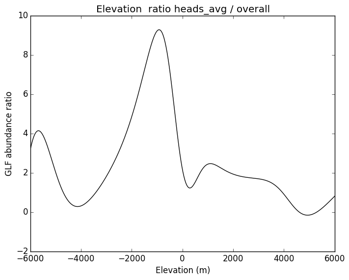 The GLF distribution as a function of elevation / elevation distribution in the HRSC tiles for the head areas. |