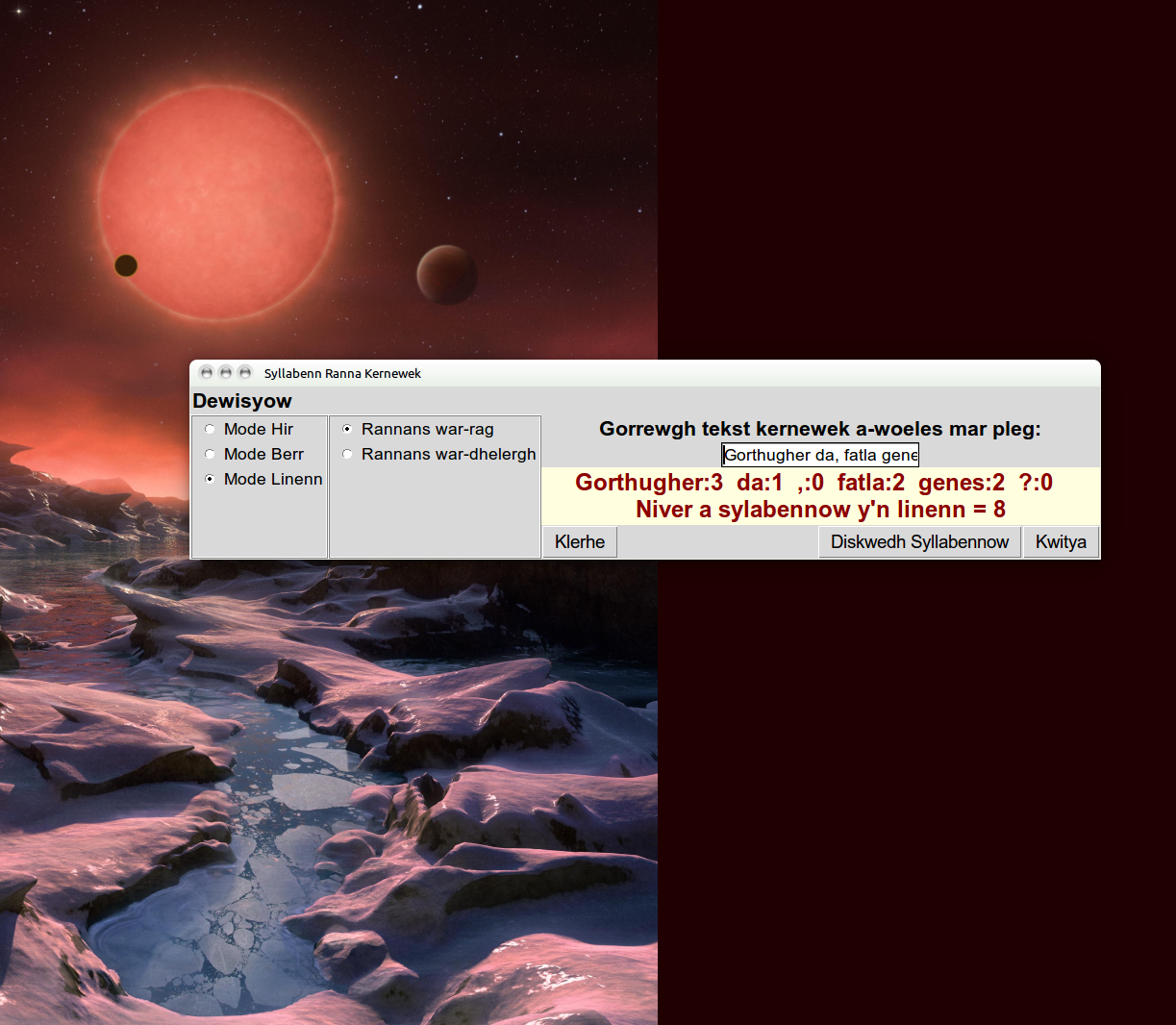The full output can be found at http://taklowkernewek.neocities.org/kernewekFSS/GwreansAnBysConvertedSWF.txt