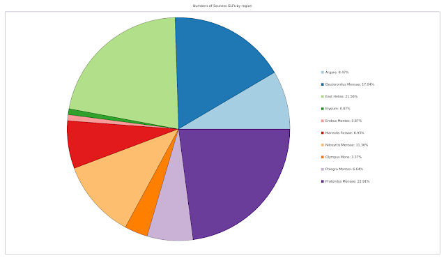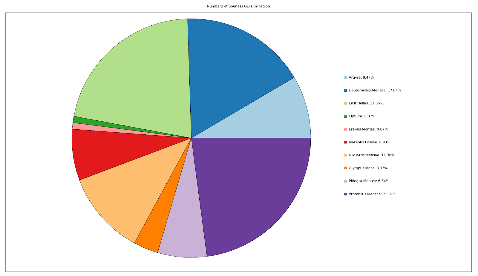 | Souness 445 shows an off-centre centre, where two other Souness GLFs are found on a mesa at 49°E, 46°N. |