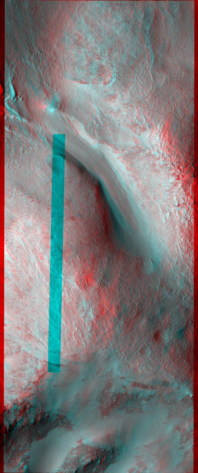 | Souness 1107/1298 is seen in a shadowed area on the margin of Reull Vallis itself. It is covered by an anaglyph PSP_001978_1445. |