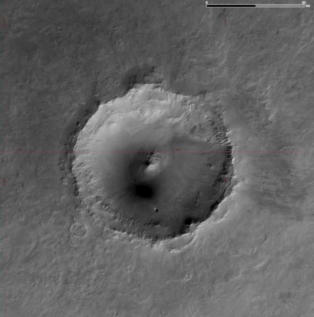 | Google Earth screenshot with HiRISE CTX imagery of crater containing Souness 193 which is not covered by any HRSC DTM tiles. The HiRISE anaglyph referenced earlier covers a portion of the eastern wall. |