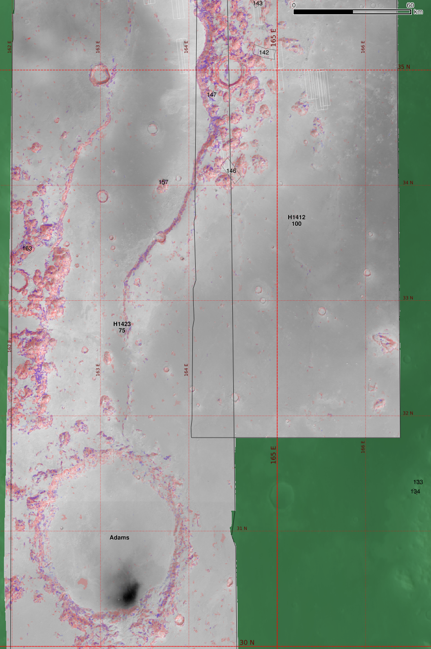| Zooming into the area covered by HRSC tiles h1526 and h2878. |