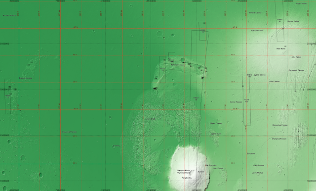 We turn again to the northern hemisphere of Mars, with the areas around Erebus Montes and north of Olympus Mons shown in this post.