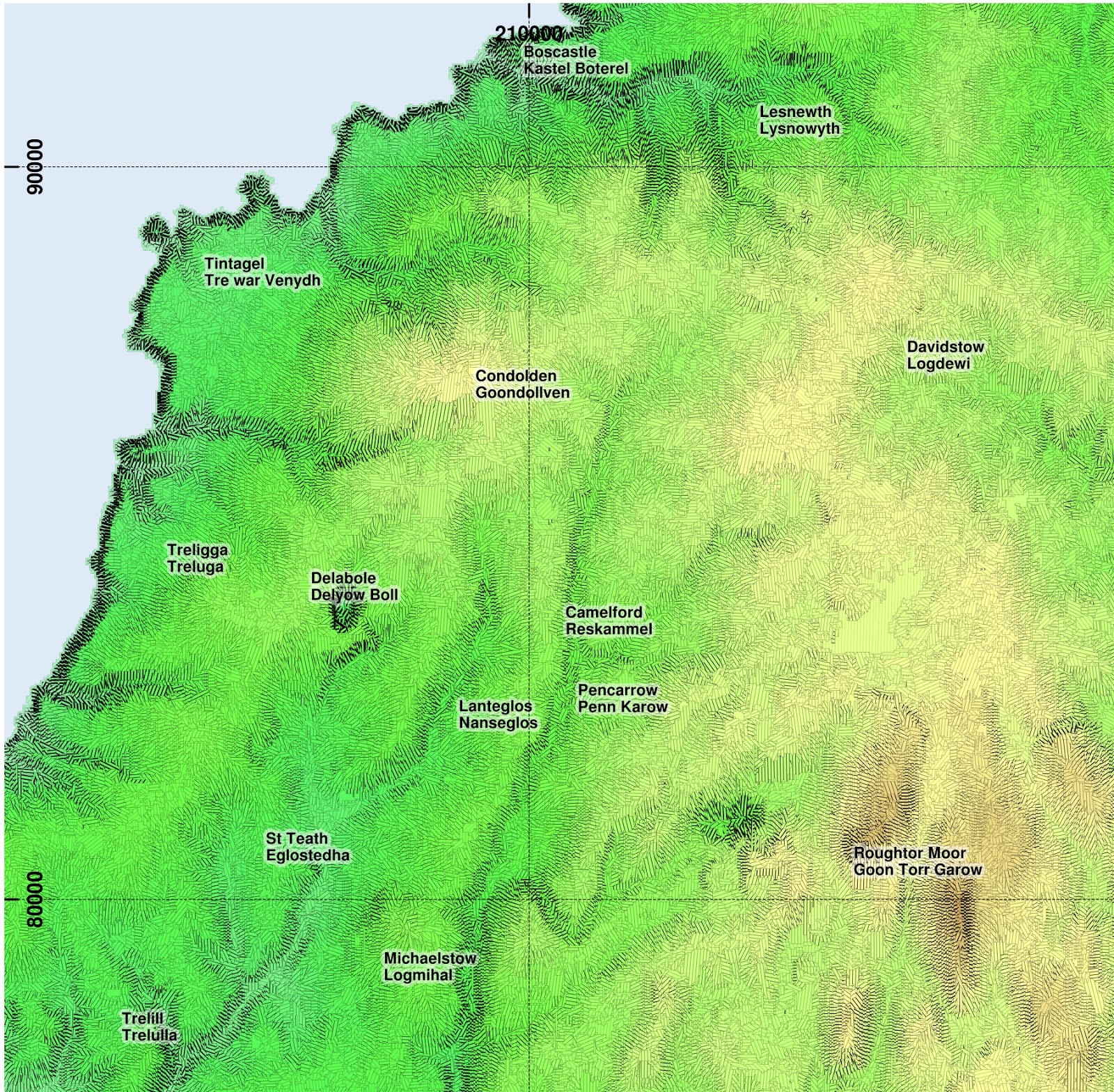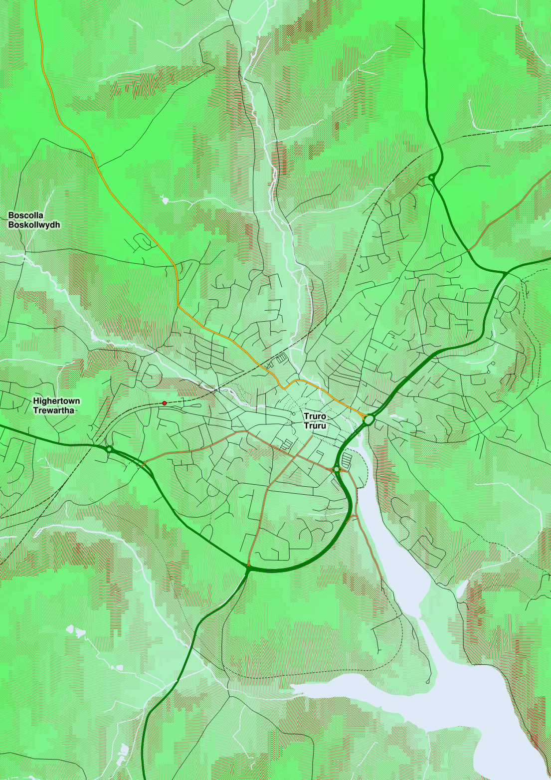 A larger version, showing a wider area including Redruth/Camborne (14MB PNG). |