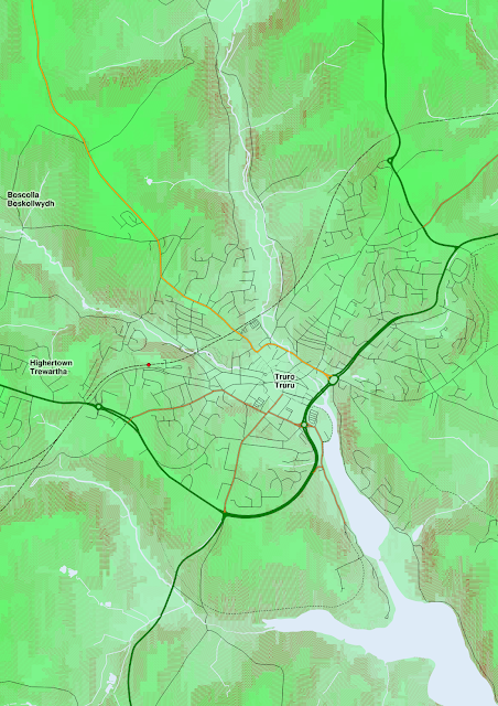 Close up of Truro area, rendered at 1:25000