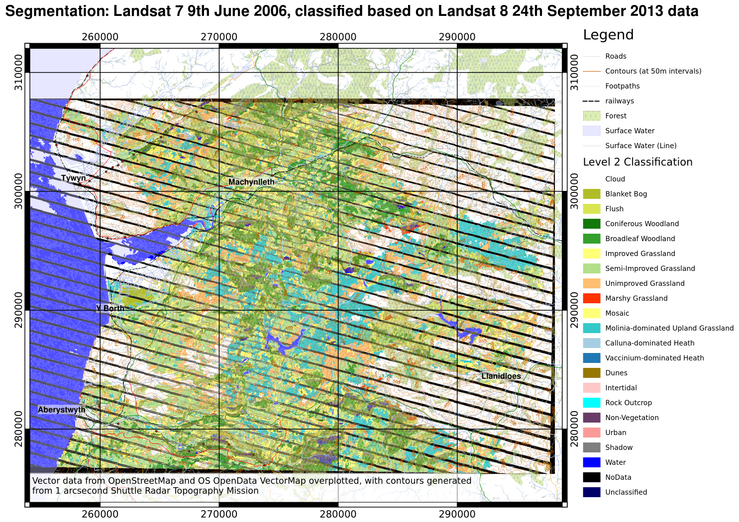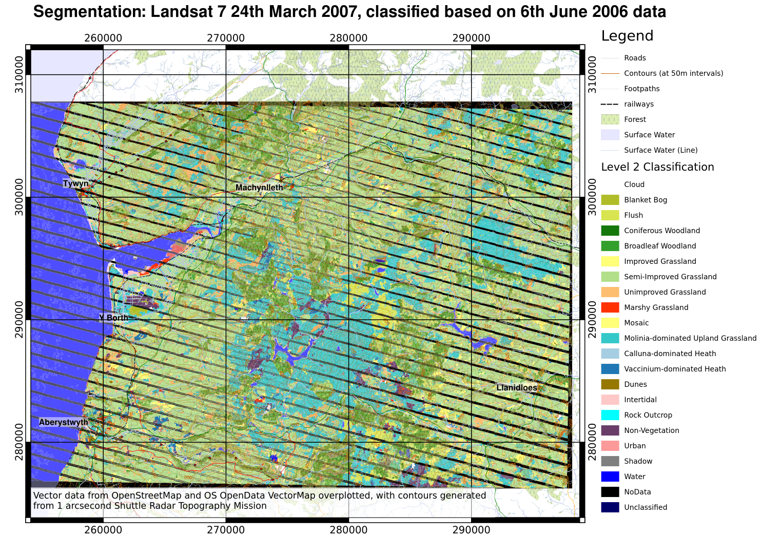 As part of one of the modules for my MSc in Remote Sensing and Planetary Science at Aberystwyth University, I did an assignment on land cover classification in Wales, using the LandSat satellites. I used data from Landsat 7 and Landsat 8.