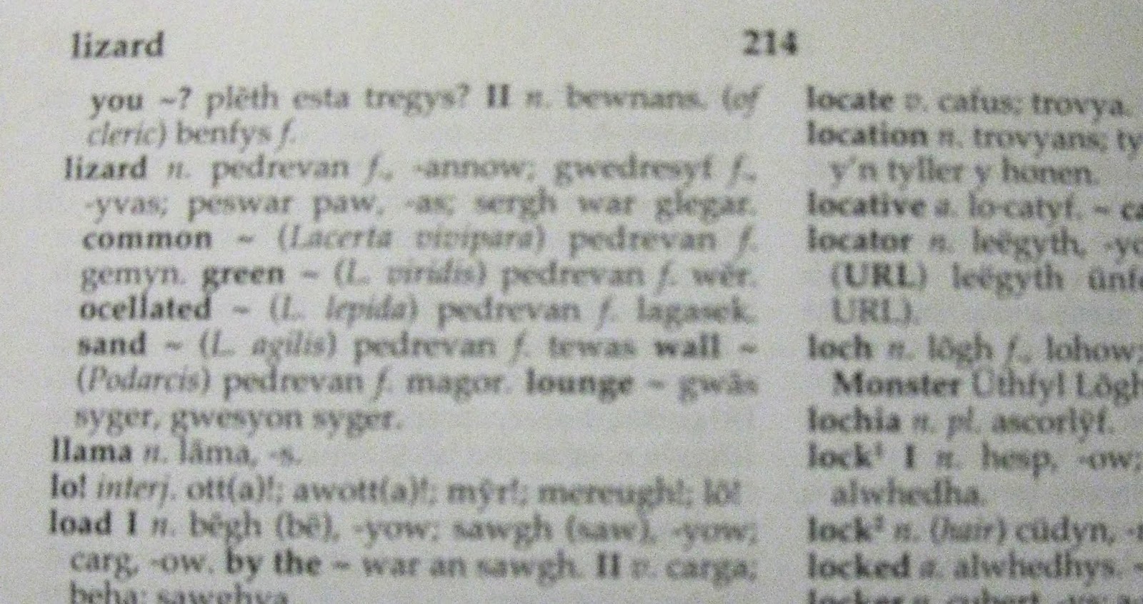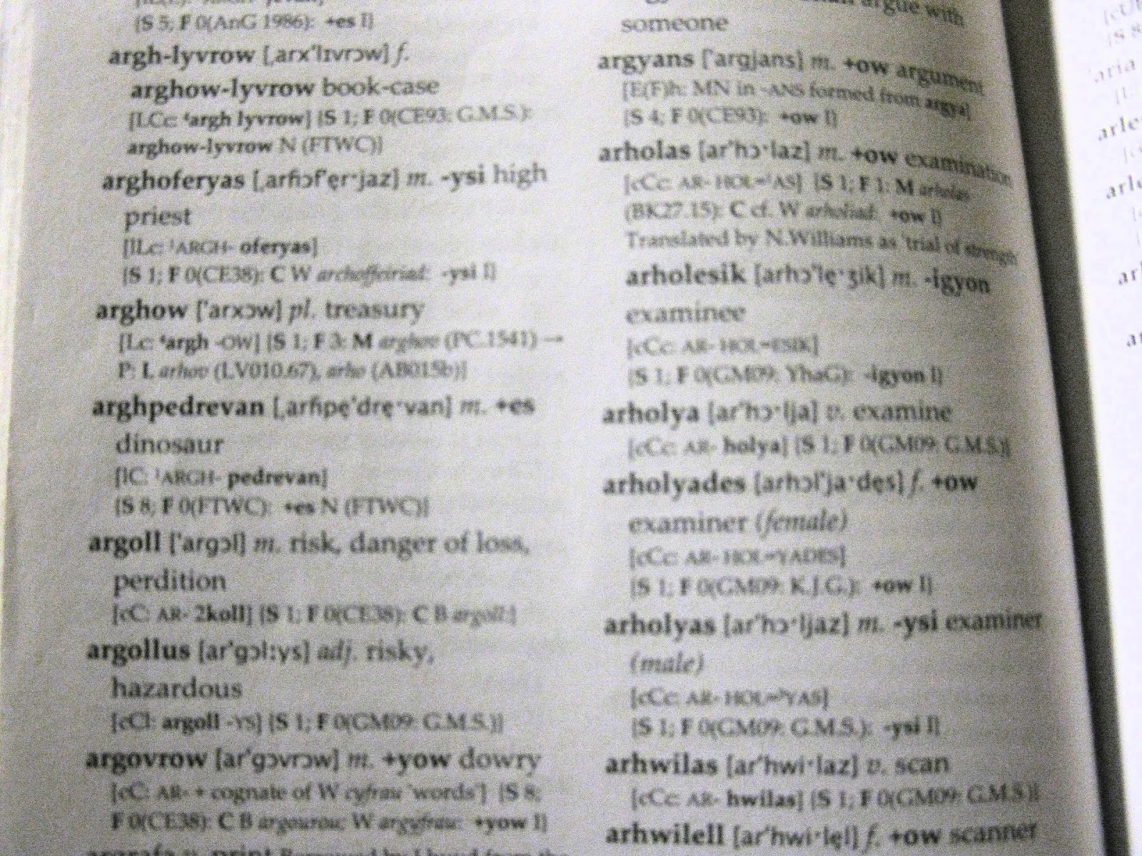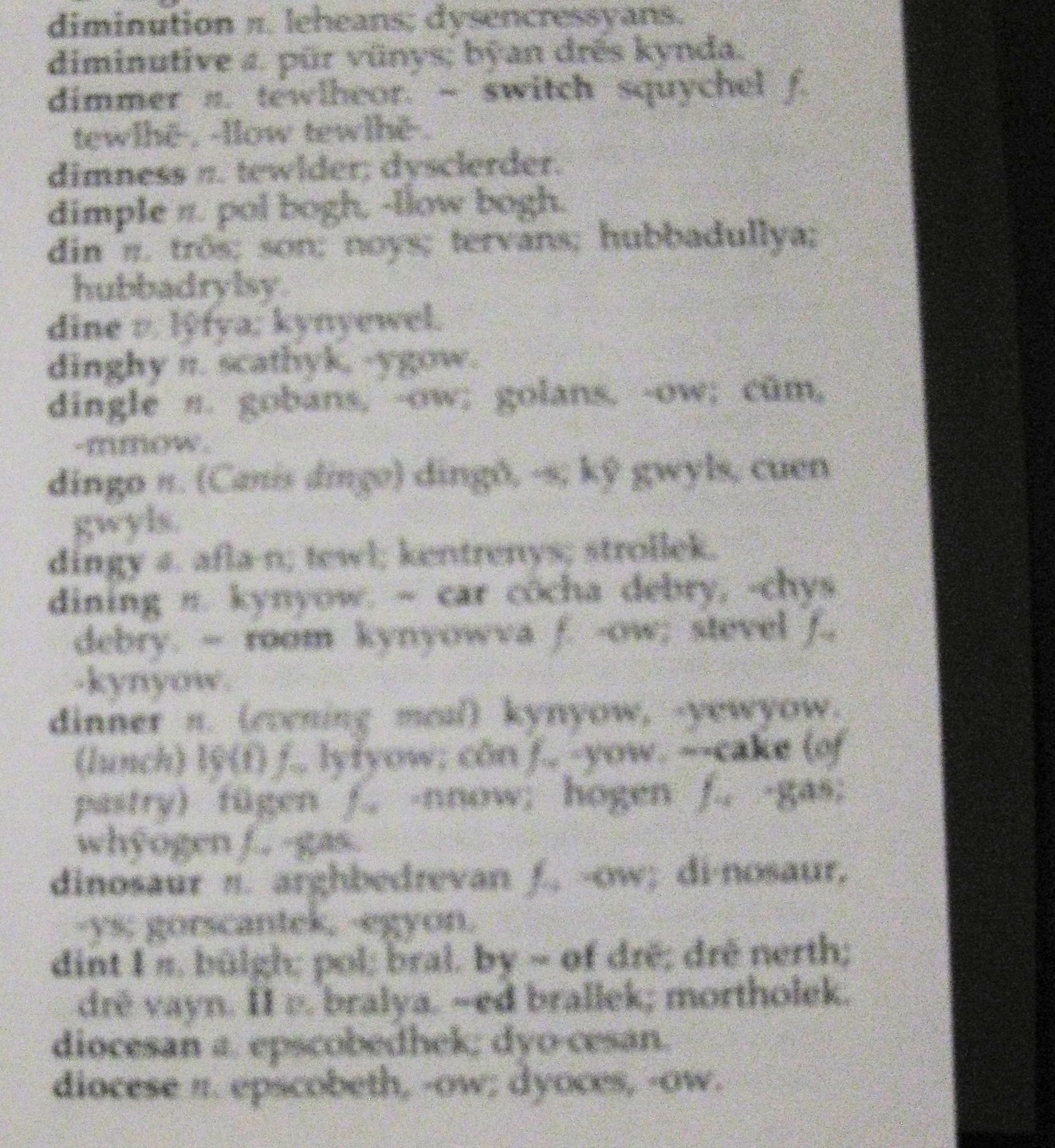 Therefore in Cornish, the following could perhaps be offered? I am assuming that the SWF would use dinosor rather than the spelling dinosaur.