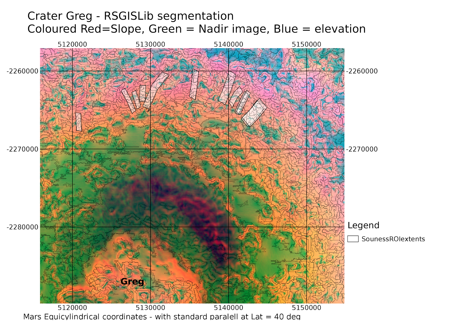 In the dissertation itself, I explain that the Martian terrain is segmented using RSGISLib and a classifier function assigned to the segments using the Souness et al. 2012 glacier-like forms as a guide.