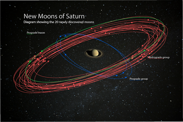Yma ugens loer nowydh diskudhys a-dro dhe Sadorn.