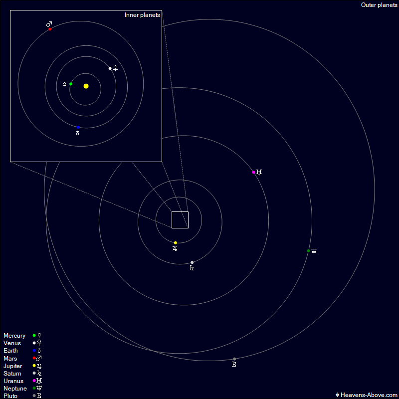 An kevreyth howlek yn mis-Metheven 2019 dhyworth www.heavens-above.com |
