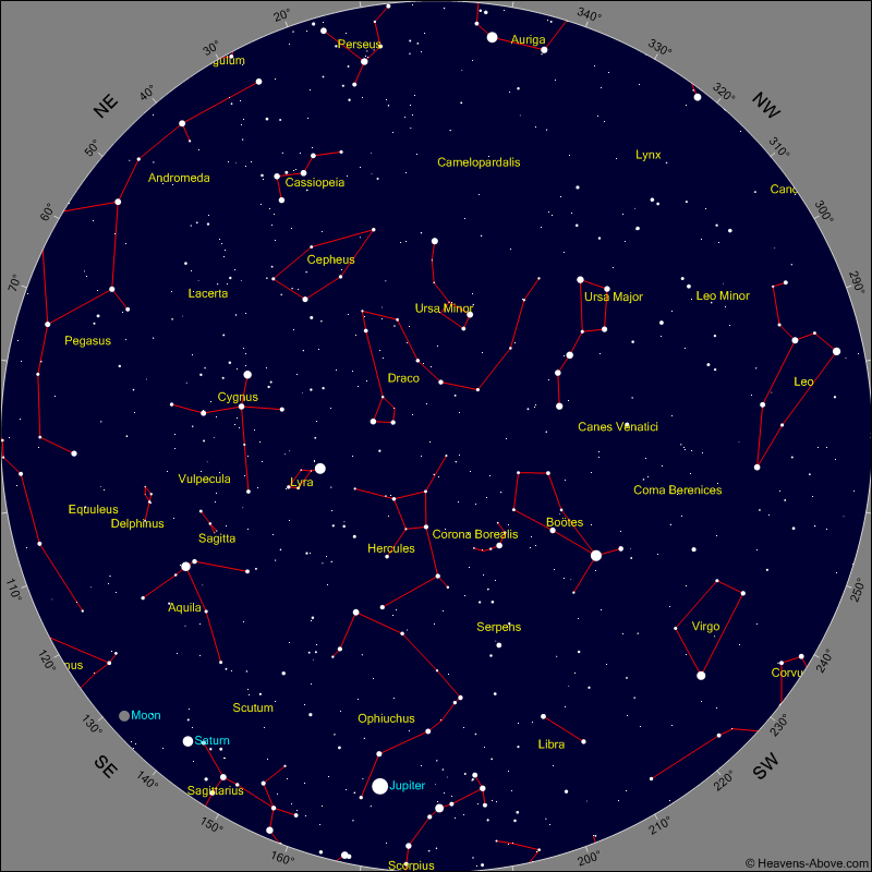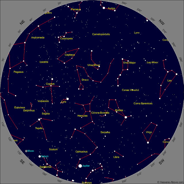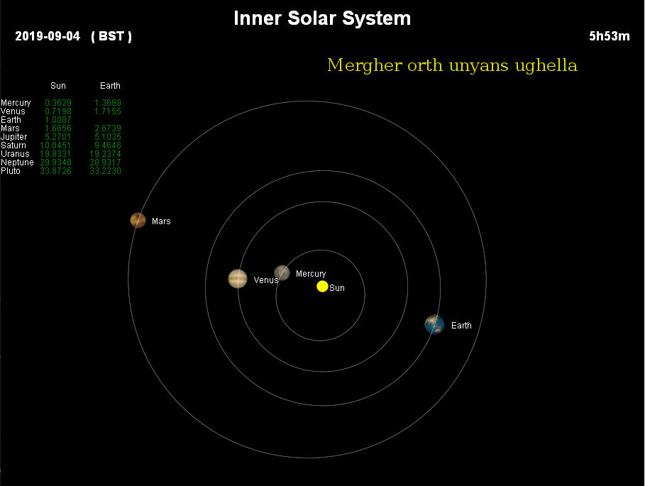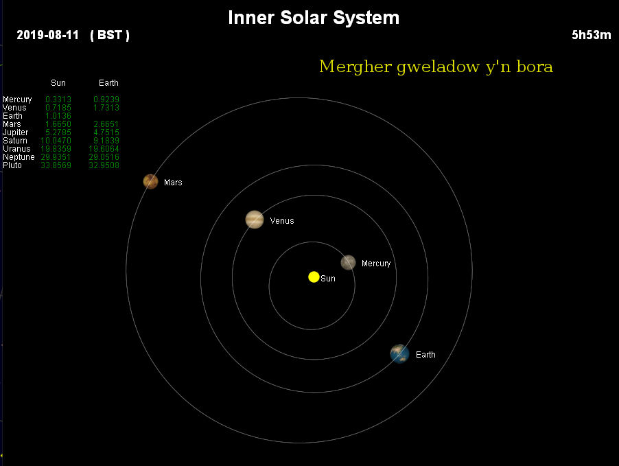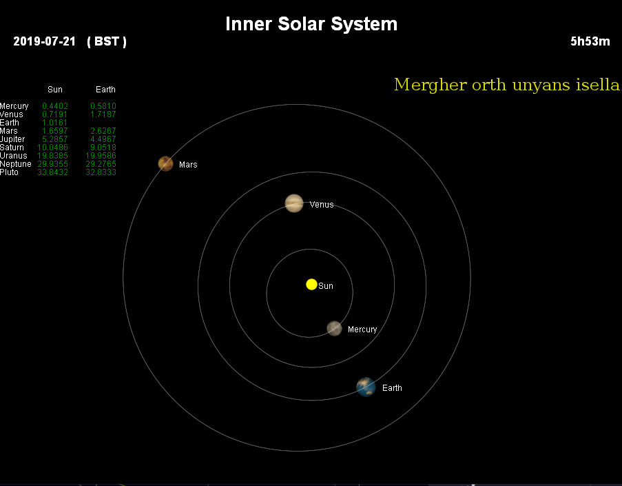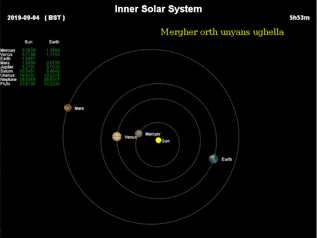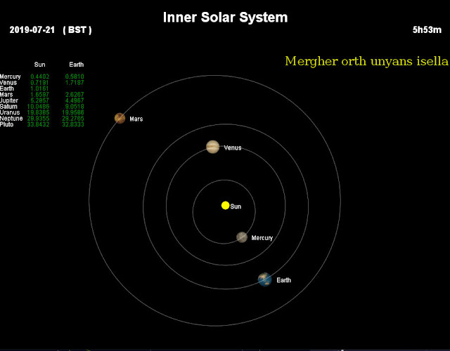 Ebron nos gweladow a Druru hanternos 20ves mis-Metheven 2019 dhyworth www.heavens-above.com |