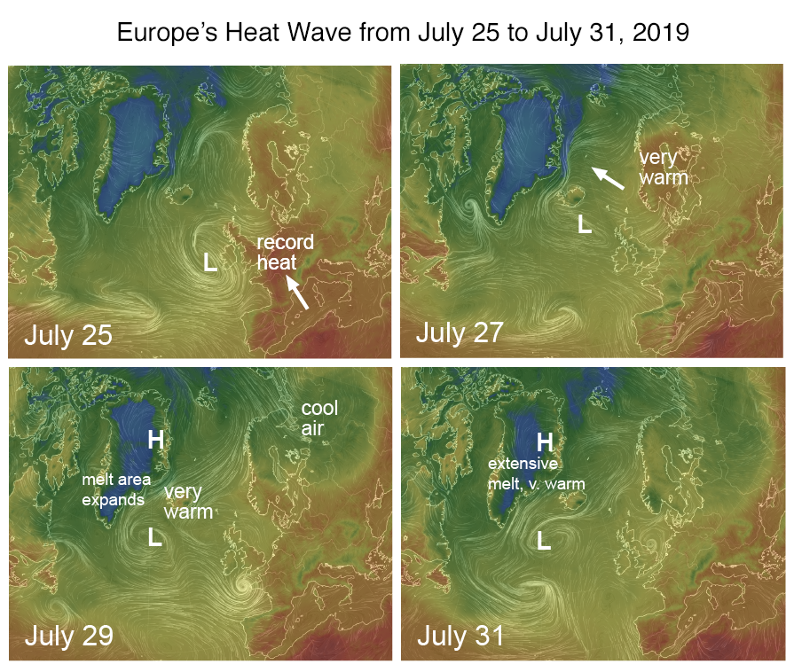 Bern ayr tomm dhe Europ. Dhyworth nsidc.org/greenland-today/2019/08/europes-warm-air-spikes-greenland-melting-to-record-levels |