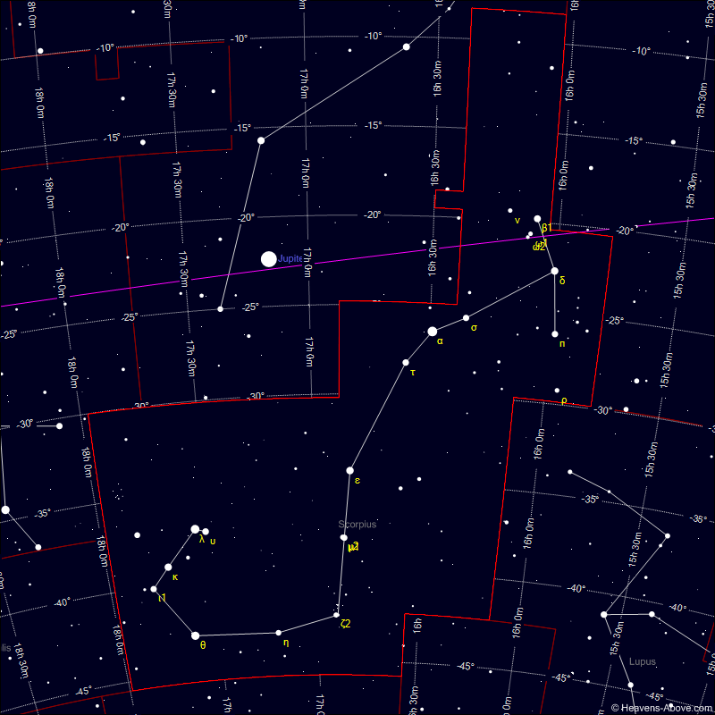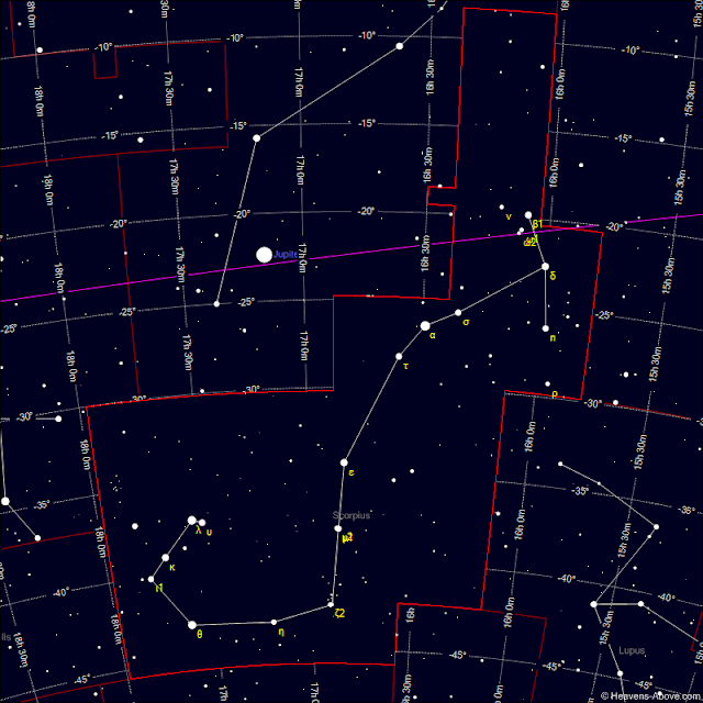 An Ranneves Scorpius. Antares = alpha Scorpii (α Sco) https://www.heavens-above.com/constellation.aspx?con=Sco . |